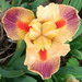 medově žlutohnědý, f. jasně červeně burgundské ve středu okolo levandulových kartáčků fialové, výška 30 cm |