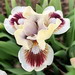 plicata, d. máslově krémový podklad napuštěný švestkově hnědou, f. teple bílé s okrajem středně švestkovým, žluté kartáčky, výška 36 cm |